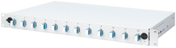 garni, 19″ (483 mm de large), 1 U, 12x LC DX, OS2, incl. cassette d’épissure, pigtails et raccords colorés, boîtier support en tôle d’acier, extractible, gris clair (RAL 7035) (DN-96331/9)