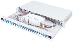 Boîte d’épissure à fibre optique 19″, OS2, LC, garni, extractible