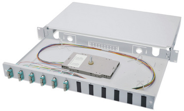 Boîte d’épissure 19″ à fibres optiques, OM3, SC, équipée, extractible