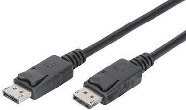 fiche mâle DP – fiche mâle DP, fixation par encliquetage, Full HD 1080p, AWG 28, surface de contact : nickelé, triple blindage, gaine : moulé, câble / fiches : noir (AK-340100-100-S)