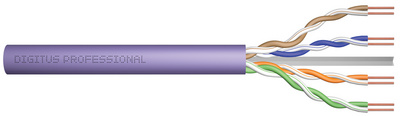 éthernet 1 Gigabit, 250 MHz Eca (EN 50575), AWG 23/1, structure du câble 4×2 avec code couleur, matériau conduc- teur : cuivre, non blindé, sans halogène, isolant: HD-PE (DK-1613-VH-5)
