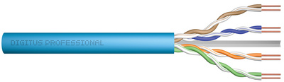 éthernet 1 Gigabit, 500 MHz Eca (EN 50575), AWG 23/1, structure du câble 4×2 avec code couleur, matériau conduc- teur : cuivre, isolant: HD-PE, non blindé, sans halogène, compatible PoE (DK-1613-A-VH-