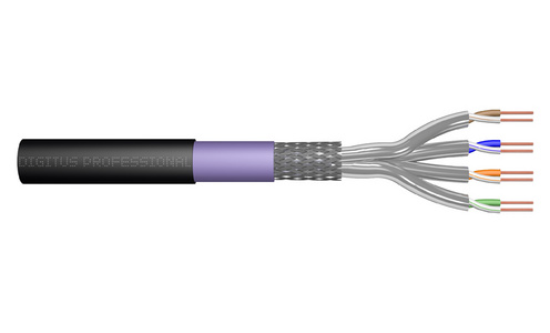 câble d’installation S-FTP, 4 x 2 AWG 23/1, fréquence: 1.200 MHz, sans halogène, LSZH-1, simplex, couleur: noir & violet, classe Euro: Eca, isolation: SFS-PO, charge de traction: 150 N, poids: 66,5 kg