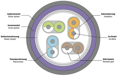 • se distingue par sa structure de câble 4x 2 AWG23/1 et atteint une fréquence de transmission de 1.200 MHz
