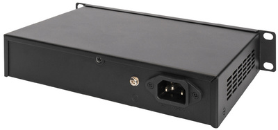 16 x RJ45, 10/100/1000Base-TX, norme réseau IEEE 802.3x contrôle de flux, bande passante de fond de panier: 32 Gbps, bloc d’alimentation intégré, sans ventilateur (DN-80115) fiche de courant avec terr
