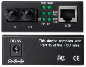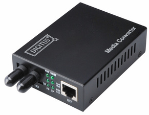 monomode, convertit les signaux réseau basés sur fil en signaux fibre optique, RJ45 10/100/1000BaseTX – ST 1000Base portée 0,5 km, auto-détection de duplex plein et semi-duplex voyant lumineux,support