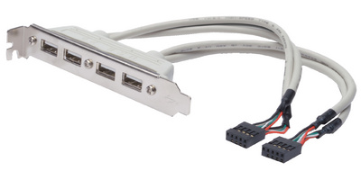 2 x connecteurs IDC (10 broches) – 4 x USB-A femelle, AWG UL2725, taux de transfert: 480 Mbit/sec., manchon moulé, double blindage, surface de contact nickelé, couleur: beige, dans un sachet plastique
