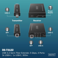 transmission de signaux USB jusqu’à 20 km avec câble fibre optique LC Multimode, hub USB: 3x USB-A 3.2 Gen1, 1x USB-C 3.2 Gen1, connexion simultanée de 4 appareils USB, taux de transfert: 5 Gbps, coul