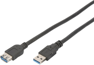 fiche mâle USB-A – fiche femelle USB-A, capot moulé, triple blindage, AWG28, UL2725, contact de surface : nickelé, cou- leur fiche : noir, couleur câble : noir, en sachet plastique (AK-300203-018-S)