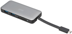 connexions: 1x USB-C, 1x sortie HDMI, 2x USB-A, 1x RJ45 Gigabit Ethernet, 2x lecteur de cartes (SD/MicroSD), boîtier: aluminium/plastique, longueur du cordon: 100 mm, dimensions: (L)110 x (P)50 x (H)1
