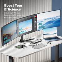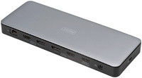 connexions: 1x USB-C, 3x HDMI + 2x sortie DP, 3x USB-A (5Gbps), 1x USB-A (10 Gbps), 1x RJ45 Gigabit Ethernet, 1x DC-Jack, 1x jack audio 3,5 mm, boîtier: aluminium/ plastique, dim.: (L)225 x (P)85 x (H