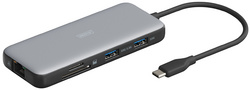 connexions: 1x USB-C, 2x sortie HDMI, 2x USB-A, 1x RJ45 Gigabit Ethernet, 2x lecteur de cartes (SD/MicroSD), boîtier: aluminium/plastique, longueur du cordon: 200 mm, dimensions: (L)120 x (P)50 x (H)1