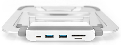 DIGITUS Support pour ordinateur portable avec station – d’accueil USB-C, 8 ports, 4 angles d’inclinaison réglables, pour ordinateurs portables de 25,4 cm ) 38,10 cm (10 à 15″), pliable, 2x ports vidéo, 2x ports USB-C, 1x interface RJ45, 2x ports USB 3