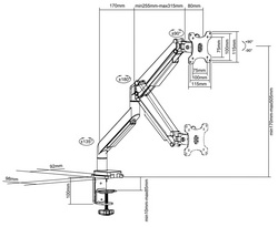 DIGITUS Support universel pour écran, fixation par serrage – pour écran de 38,1 à 81,28 cm (15″ à 32″), fixation facile par serrage, pivotant/inclinable, vérin pneumatique, incl