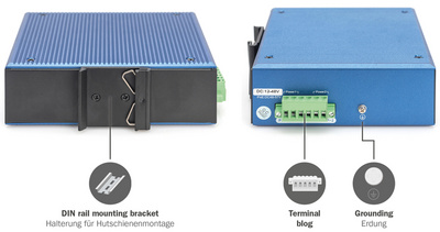 8x RJ45 10/100/1000Base-Tx + 2x port 1000Base-Fx, IP40, bande passante: 20 Gbps, mémoire tampon: 4,1 Mbits, taux de transfert: 15 Mbps, Jumboframerate: 10.240 bits, boîtier métallique, dimensions: (L)