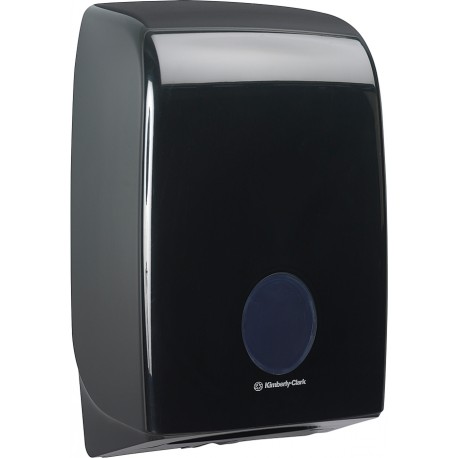 Distributeur essuie-mains pliés interfoliés AQUARIUS noir Le distributeur d’essuie-mains pliés Aquarius est doté d’une fenêtre de contrôle qui permet de visualiser le niveau de consommable disponible.