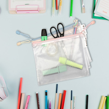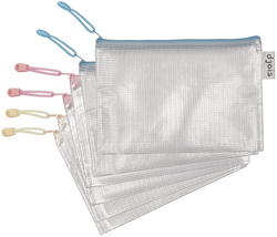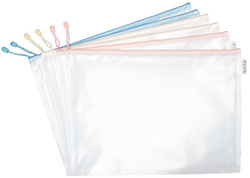 djois by tarifold Pochette à zip ZIPPER Pastel, A3, assorti – en PVC souple armé, transparent, fermeture zip métallique et lanière de préhension en couleur, épaisseur: 230 microns, dimensions internes: 445 x 325 mm / externes: 450 x 330 mm en paquet de 6 pièces (509030) assorti dans les couleurs: bleu clair, rose, jaune clair