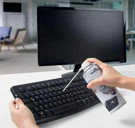 – pour le nettoyage des endroits difficiles d’accès ou zones sensibles sur les postes de travail informatiques ainsi que sur des appareils photos numériques ou caméras – adéquat pour les claviers contenant diverses miettes ou des photocopieurs sales – souffler tout simplement la saleté!