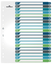 DURABLE Intercalaire en plastique, numérique, A4+, 5 touches – 1 – 5, blanc, perforation universelle, hauteur complète, avec onglets colorés, couverture d’index imprimable, en PP, avec couverture, extra-large, n’altère pas les documents, dimensions: (L)230 x (H)297 mm (679327)