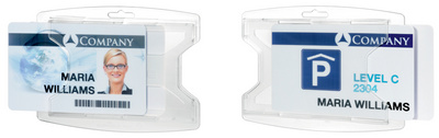 DURABLE Porte-badge “reXycle”, pour 2 badges, transparent – en PP recyclé à 70%, évidement sur le côté pour faciliter le retrait du badge, sans fixation, utilisable en format portrait ou paysage, dim