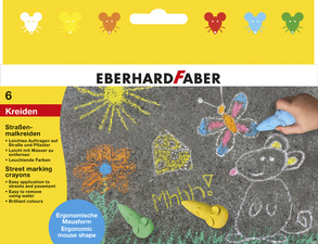 EBERHARD FABER Craie de trottoir Souris, étui en carton de 6 – ergonomique, en forme de souris, couleurs éclatantes, s’enlève simplement à l’eau, assorti dans les couleurs: blanc, jaune, vert, rouge, bleu & orange contenu: 6 pièces (526561)