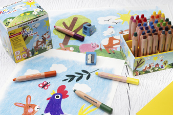 Crayon de couleur 3 en 1 Jumbo MINI MAXI, boîte en carton de 40 3 en 1 : à la fois crayon de couleur, de cire et d’aquarelle