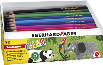 EBERHARD FABER Crayon de couleur COLORI Jumbo, boîte de 72 – triangulaire, épais, épaisseur de la mine: 5 mm, mine incassable, sans bois – 51% de matériau recyclé, résiste à l’eau, idéal pour les débutants, assorti en 24 couleurs contenu: 72 pièces dans une boîte en carton (511471)
