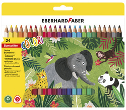 EBERHARD FABER Crayon de couleur COLORI Jumbo, étui de 10 – triangulaire, épais, épaisseur de la mine: 5 mm, mine incassable, sans bois – 51% de matériau recyclé, résiste à l’eau, idéal pour les débutants, dans un étui en carton contenu: 10 pièces (511409)