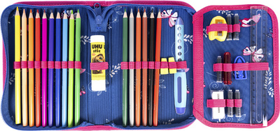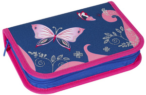 EBERHARD FABER Étui scolaire Papillon, 32 pièces – en polyester, dimensions: (L)196 x (P)132 x (H)34 mm, avec rabat intérieur, motif: papillon, couleur: rose/bleu garni (577471)