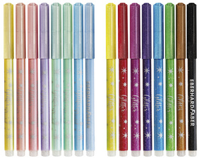 EBERHARD FABER Feutre à paillettes, carton cadeau de 16 – rond, largeur de tracé: 3 mm, lavable, couleurs intenses, capuchon ventilé, lavable sur la plupart des textiles, avec effet pailleté pour des embellissements scintillants contenu: 16 feutres (551016)