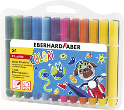 EBERHARD FABER Feutre large COLORI, étui de 24 – triangulaire, largeur de tracé: 2 mm, encre à base d’eau, lavable sur la plupart des tissus, capuchon ventilé, étui en plastique avec poignée de transport, contenu: 24 feutres (551224)