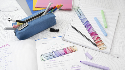 EBERHARD FABER Règle plate Rainbow, 300 mm – flexible, en plastique, graduation pour droitiers & gauchers, graduation en cm & mm, sur carte blister (570012)