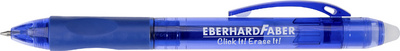 EBERHARD FABER Stylo encre gel Click it! Erase it!, bleu – largeur de tracé: 0,7 mm, rechargeable, couleur du tracé: bleu, rétractable, avec clip, la pointe plastique à l’extrémité du corps permet d’effacer ce qui a été écrit, sur carte blister (582171)