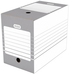 ELBA Boîte d’archives, largeur 100 mm, A4, gris / blanc – en carton ondulé stable sans acide, pliage automatique, champ d’inscription imprimé, en paquet de 20 pièces (400064940)