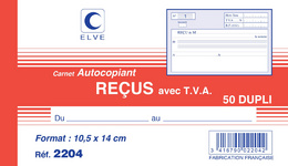 ELVE Manifold “Reçus”, 105 x 180 mm, dupli, 50 feuilles