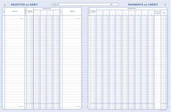 ELVE Piqûre comptable Ventes, 320 x 240 mm vertical – 100 pages, folioté de 1 à 100, 7 colonnes sur 1 page, 31 lignes + report + à reporter, papier registre supérieur 100 g/m2, couverture carte lustrée en couleur, pas de choix de couleur possible (93241)