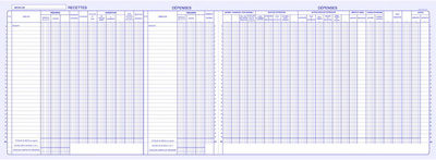 ELVE Piqûre “Journal Recettes Dépenses des Associations” – 80 pages, folioté, papier registre supérieur 100 g/m2, imprimé bleu, couverture carte lustrée, coloris assortis, pas de choix de couleur possible, dim