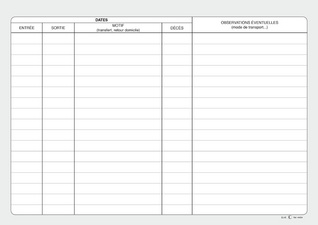 Registre “Entrées et sorties des résidents dans l’EHPA” Etablissement d’hébergement pour personnes Agées
