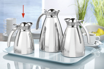 Esmeyer Pichet isotherme EMPIRE, 1 litre, argent – en acier inoxydable 18/10, double paroi, incassable, passe au lave-vaisselle, gande ouverture, maniement pratique à une seule main, hauteur: 178 mm (305-077)