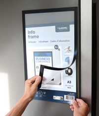 EUROPEL Cadre magnétique, A5, pack de 5, noir – set de cadres d’affichage magnétiques, en polypropylène avec recto résistant aux rayures et transparent, adhère aux surfaces métalliques, facile et rapide à déplacer contenu: 5 pièces (196102)