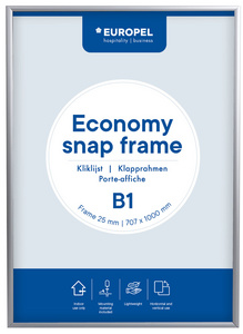 EUROPEL Cadre porte-affiche economy, A0, 25 mm, argent – en aluminium anodisé, profilé de cadre arrondi 25 mm, avec angles à onglet et film transparent anti-reflet, système Easy-Click pour un changement rapide et facile du document, incl