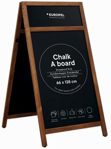 EUROPEL Panneau trottoir, 660 x 1.280 mm, naturel – cadre solide en bois de pin, aspect naturel, équipé d’un tableau noir de 3 mm revêtu de mélamine, convient aux marqueurs craies, effaçable avec un chiffon humide, s’utilise des deux côtés, avec en-tête (356243) équipé de pieds de protection sous les supports, pour l’intérieur et l’extérieur