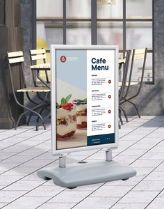 EUROPEL Panneau trottoir avec pied en plastique, A1, argent – cadre à rabattre de grande qualité avec angles à coupe d’onglet en aluminium anodisé, largeur du profilé: 35 mm, avec paroi arrière en plastique, pour un format papier A1 dimensions: (L)690 x (P)100 x (H)1