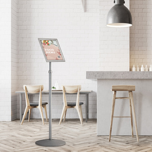 EUROPEL Porte-affiche avec cadre à clipser, A3, télescopique – cadre en aluminium anodisé, profilé de cadre 25 mm, avec angles à onlget et film transparent anti-reflets, pied en acier, diamètres: 360 mm, couleur: gris, hauteur réglable de 1