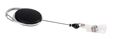 EUROPEL Porte-badge avec enrouleur et mousqueton, rond, noir – avec fermeture à mousqueton et lanière à bouton pression, longueur du cordon: 800 mm contenu: 10 pièces (121284)