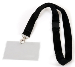 EUROPEL Porte-nom avec cordon textile, 90 x 60 mm – porte-badge/carte en PVC transparent, avec trou perforé pour le cordon, cordon textile noir avec mousqueton, longueur: 440 mm, largeur: 20 mm contenu: 5 pièces (121280)