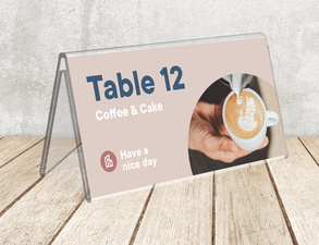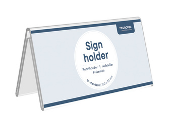 EUROPEL Porte-nom de table, 150 x 70 mm, en forme de toit – en acrylique transparent, pour une présentation des deux côtés, dimensions: (L)150 x (H)70 mm (350081)