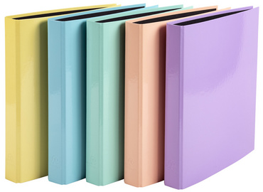 EXACOMPTA Classeur à anneaux Aquarel, 4 anneaux, assorti – en carton 1,7 mm, revêtu de papier pelliculé, intérieur en papier noir effet miroir, diamètre anneau: 25 mm, largeur dos: 40 mm, dimensions: 315 x 300 mm en paquet de 10 pièces (51560E) assorti dans les couleurs: bleu pastel, vert pastel, lilas, rose et jaune citron