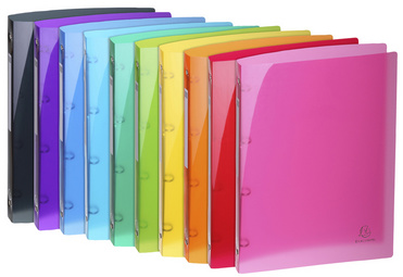EXACOMPTA Classeur à anneaux Iderama, PP, A4, 4 anneaux – en PP 0,5 mm, diamètre des anneaux: 30 mm, largeur de dos: 40 mm, dimensions: 268 x 320mm, capacité: 275 feuilles (80g) en paquet de 10 pièces (51770E) assorti dans les couleurs bleu clair, bleu foncé, jaune, noir, orange, rose, rouge, vert anis, vert foncé, violet