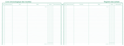 EXACOMPTA Piqûre “Livre chronologique Micro-entrepreneur” – ——————– pour le marché: F ——————— Livre chronologique des Recettes – Registre des Achats 240 x 320 mm, 80 pages, papier 110 g/m2, couverture coloris assortis -> pas de choix de couleur possible! (4410E) recettes indiquées à gauche, achats à droite avec les références des pièces justificatives, selon le régime fiscal de la micro-entreprise